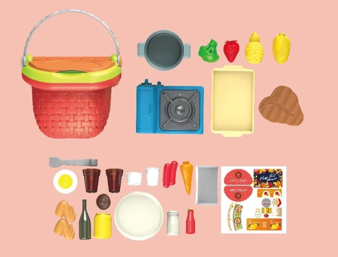 Slatka piknik košarica s dodacima za male gurmane nudi zabavnu i kreativnu igru. Sadrži ukupno 27 dijelova, uključujući voće, povrće, bočicu i tanjurić, zahvaljujući kojima djeca mogu pripremiti vlastiti piknik. Podržava kreativnost, maštu i igranje uloga kod kuće i na otvorenom.