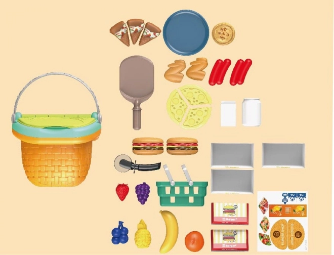 Slatka piknik košara za male gurmane sadrži 32 dodatka – voće, povrće, pizzu, burger i druge poslastice. Poticanje kreativne igre, mašte i socijalnih vještina tijekom zajedničkog “piknika” s obitelji ili prijateljima. Odlično za igre na otvorenom i zabavu kod kuće.