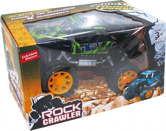 Ovaj izdržljivi model rock crawlera stvoren je za avanture. Zahvaljujući frikcijskom pogonu dovoljno je povući autić po podlozi i pustiti – odmah kreće naprijed. Velika terenska kola i povišeni ovjes svladavaju prepreke, tepihe i vanjske podloge.