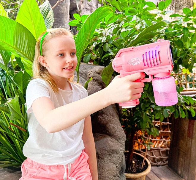 Ovaj ružičasti pištolj za mjehuriće pretvara svaki trenutak u čarobnu mjehurićastu predstavu. Samo napunite spremnik, pritisnite okidač i za tren će se oko vas rasplesati stotine mjehurića. Zahvaljujući zvučnim efektima zabava je još intenzivnija, a djeca će se u igru odmah zaljubiti.