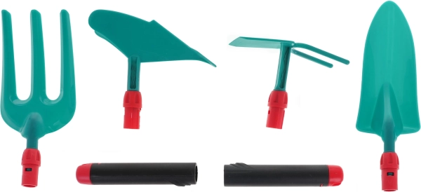 Praktične odvojive drške olakšavaju prijenos i pohranu alata. Laka i izdržljiva konstrukcija idealna je za prve vrtlarske pokušaje u vrtu, na balkonu ili u posudi.