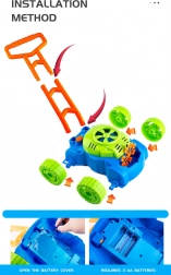 Unutar kosilice radi mali ventilator koji tjera zrak na 8 rotirajućih prstenova. Oni se naizmjenično umaču u spremniku s tekućinom i šalju mjehuriće kroz mlaznicu – tako nastaje puno mjehurića bez prekida. Popratni zvukovi mjehurića i melodija iz crtića pojačavaju radost igre.