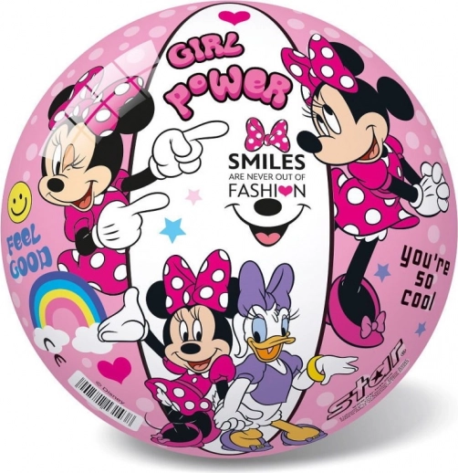 Šarena gumena lopta s motivom MINNIE, promjer 23 cm. Laka, periva i idealna za vrt, igralište i bazen. Odlična za djecu od 3 godine.