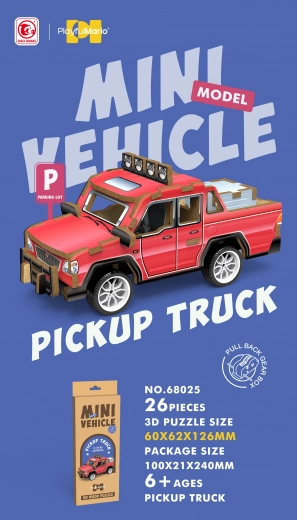 Uzivajte u fantasticnom iskustvu sklapanja ovog 3D drvenog puzzla Pickup. Ovaj detaljan model je odlican za djecu od 6 godina i stariju, cineci ga idealnim nacinom za poboljsanje motorickih vjestina i strpljenja. Puzzle se sastoji od 26 precizno izrezanih dijelova i pruza sate zabave.