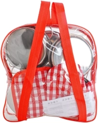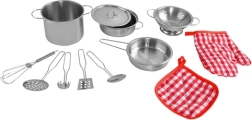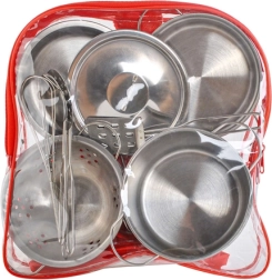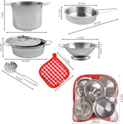 Ovaj realistični metalni set lonaca i pribora idealan je za dječje kuhinjice i igru domaćinstva, bistroa ili restorana. Klasičan srebrni izgled odlično se uklapa u svaki dječji kutak, a univerzalni poklopac pristaje na sve lonce. Zahvaljujući laganoj konstrukciji i kompaktnim dimenzijama, cijeli se set lako prenosi i sprema.