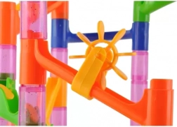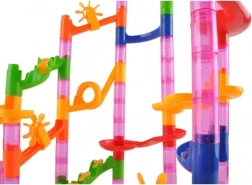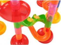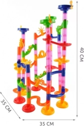 Ova šarena kuglična staza omogućuje djeci gradnju raznolikih trasa s različitim stupnjevima težine. U kompletu su vjetrena kola, petlje i zapreke koje kuglice aktiviraju tijekom vožnje. Dijelovi se lako i intuitivno povezuju, pa možete brzo mijenjati konfiguracije i isprobavati nove ideje.