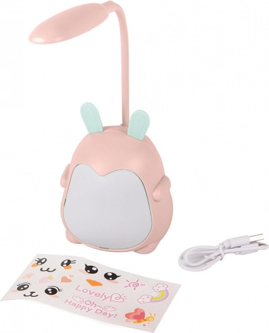 Preslatka dječja stolna lampica u obliku životinjice donosi meko bijelo svjetlo i RGB pozadinsko osvjetljenje za razigranu atmosferu. Zahvaljujući fleksibilnoj ruci usmjerit ćete svjetlo točno tamo gdje je potrebno – za čitanje, učenje ili večernje uspavljivanje. Lampica se puni preko USB‑a, ima 3 načina osvjetljenja i izrađena je od izdržljive plastike ugodne na dodir. U paketu je set naljepnica za kreativno ukrašavanje izgleda.