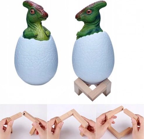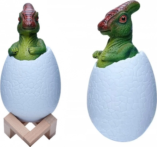 Detaljno izrađen dinosaurus koji izlazi iz napuknutog jajeta na drvenom stalku ukrasit će svaku dječju sobu i potaknuti maštu malih istraživača.