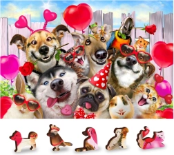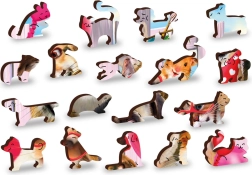 Puzzle sadrže jedinstveno oblikovane dijelove, od kojih neki mogu stajati kao male figure.