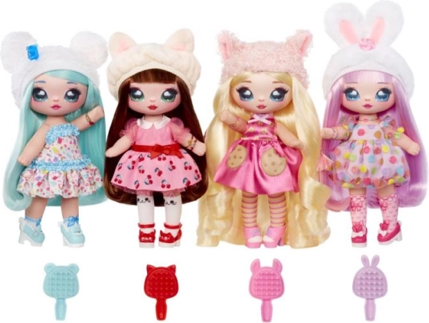 Otkrij čaroliju kolekcionarske lutke Na! Na! Na! Surprise Sweetest Sweets Brianna Bear visine 18 cm. Ova preslatka lutka s medvjedić izgledom ima dugu tirkiznu kosu, stylish outfit i mekani šeširić s uškama. U pakiranju ćeš pronaći i četku za kosu za lako češljanje te dodatke za kreativnu igru i stvaranje modnih lookova.