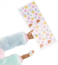 U pakiranju ćeš pronaći više od 15 iznenađenja, uključujući umjetne nokte, turpiju i lakove za nokte. Svaka lutka ima drugačiji tematski studio. Nokte možeš ukrasiti po svom ukusu naljepnicama i šljokicama.