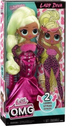 Lutka L.O.L. Surprise! O.M.G. Lady Diva donosi raskošan stil, sjajne detalje i izraženi ružičasti look koji osvaja na prvi pogled. Zahvaljujući pokretnim zglobovima odlična je za poziranje i fotografiranje, dok bogata oprema dodataka potiče kreativno kombiniranje outfita.