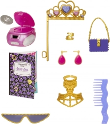 Cassie Cool oduševljava svjetlucavim outfitom i upečatljivom ljubičastom kosom. Set sadrži naočale, torbicu, krunu i druge modne komade za beskrajne kombinacije.