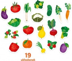 Hej, djeco! Znate li što raste u vrtu i voćnjaku? Puzzle s uparivanjem voća i povrća su edukativni set koji sadrži 19 šarenih dvodijelnih slagalica!