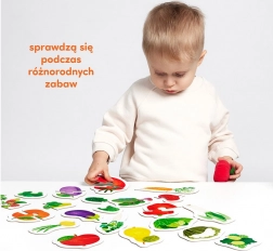 Iskoristite igru za učenje novih riječi. Imenjujte voće i povrće na ilustracijama, njihove boje i pojedine dijelove. Upozorite dijete na sličnosti i razlike između slika.