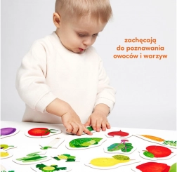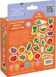 Na šarenim slagalicama prikazane su zdrave poslastice iz vrta i voćnjaka. Traženje i spajanje polovica svestrana je razvojna zabava koja poboljšava koordinaciju ruka-oko te na zabavan način omogućuje učenje i utvrđivanje novih riječi i znanja o svijetu oko nas.
