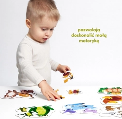 Pronalaženje odgovarajućih dijelova usavršava zapažanje. U tome će vam pomoći raznobojne poleđine. Sastavljanje slagalice sjajna je vježba za finu motoriku i prostornu predodžbu.