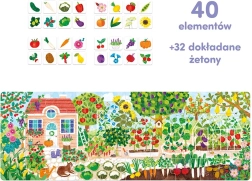 Živopisna, velikoformatna slagalica sastoji se od 40 dijelova i prikazuje cvjetni vrt i voćnjak. Na dodatnim karticama nalazi se 32 vrste voća i povrća koje možete pridružiti. To omogućuje puno fascinantne i raznoliko poticajne zabave za bolje razumijevanje i pamćenje onoga što raste u vrtu. Mnogo zanimljivosti o prirodi pronaći ćete na plakatu priloženom uz slagalicu. Edukativni set bit će sjajna ideja za poklon znatiželjnom predškolcu.