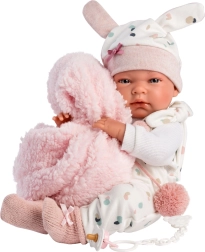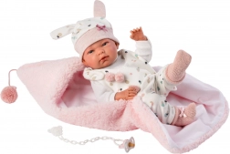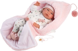 Ovaj šarmantni set dodataka za lutku NEW BORN (40–42 cm) spaja sladak izgled s praktičnošću. Dvostrana dekica s kapuljačom i dekorativnim pomponom služi kao topli pokrivač i kao mekana podloga za igru i odmor lutke. Nježne boje i točkice usklađene su s kapicom i papučicama za cjelovit izgled.