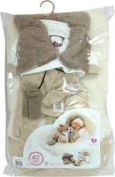 - 5-dijelna oprema – sve usklađeno u nježnim tonovima za elegantan izgled lutke.