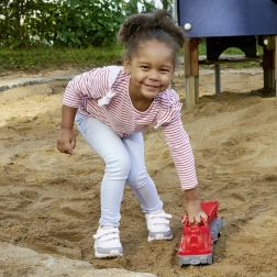Vagon s koritom lako prima pijesak ili sitne igračke i omogućuje brzo i zabavno istresanje tereta.