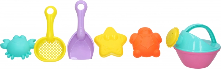Set za pijesak s kantom za zalijevanje nudi sve potrebno za zabavu u pješčaniku. Sadrži kanticu za zalijevanje, sito, lopaticu i tri kalupa, idealno za malo dijete.