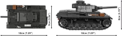 COBI Panzer III Ausf. J je precizno izrađena stavebnica inspirirana istočnim bojištem Drugog svjetskog rata. Model nudi otvoriv poklopac, rotirajuću kupolu, pomičnu cijev i funkcionalne kotače s gusjenicama. Zahvaljujući bogatim tiskovima tenk djeluje realistično i vjerno prati oblike povijesnog originala.