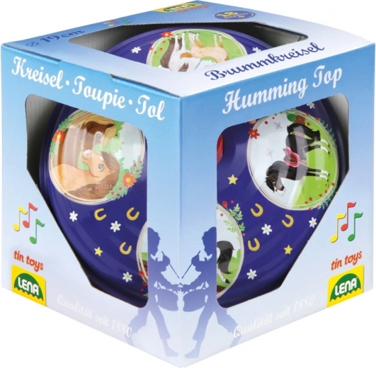 Omiljeni metalni zvrk LENA s motivom konja, promjera 19 cm, razveselit će svako malo dijete. Zahvaljujući lakom okretanju pomoću gornje ručke razvija finu motoriku, koordinaciju pokreta i potiče osjetilnu percepciju ugodnim zujavim zvukom pri rotaciji. Izdržljiva konstrukcija, živopisni dizajn i sigurna izrada prema europskim normama čine ovu klasičnu igračku pravom zabavom.