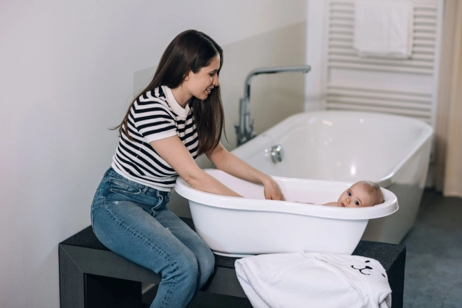 Posebno oblikovano ležište i sjedište s protukliznim zonama za sigurno i udobno kupanje od prvog dana.
