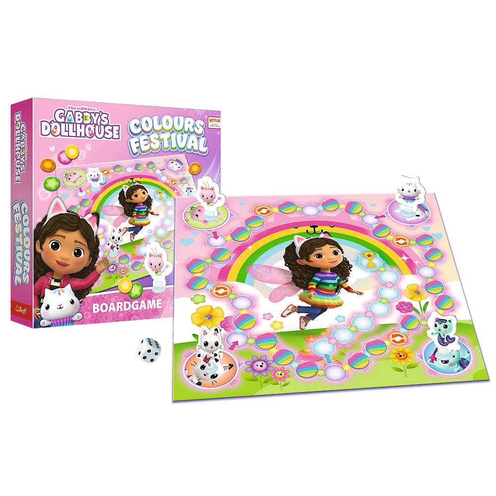 Uđite u svijet GABBY'S DOLLHOUSE i uživajte u šarenoj avanturi za cijelu obitelj. Cilj je pametno planirati poteze, skupljati žetone pet boja i otvoriti si put do Festivala boja, gdje već čeka Gabi. Jednostavna pravila i dinamična partija jamče zabavu za djecu i odrasle.