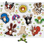 Otkrijte radost učenja s drvenom umetaljkom slagalicom KRTIĆ i njegovim prijateljima. Šareni dijelovi s praktičnim ručkicama olakšavaju rukovanje malim rukama, potiču finu motoriku, koordinacijske vještine i prepoznavanje oblika. Izrađeno od kvalitetnog drva iz odgovornih izvora i s ljubavlju u Češkoj Republici.