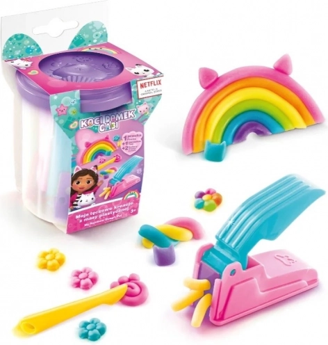 Uđite u čarobni svijet Gabby i njezinih mačjih prijatelja s kreativnim setom za male umjetnike. Set s plastelinom „Moje dugine kreacije” nudi zabavno stvaranje, razvija maštu te pomaže opuštanju i smirenju nakon zahtjevnog dana. Zahvaljujući kvalitetnoj izradi i živim bojama, idealan je za djecu koja vole bajke i kreativnu igru.