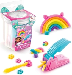 Ovaj kreativni set, inspiriran popularnom Netflix serijom, prenosi djecu u čarobni svijet Gabi i preslatkih mačića. Unutar bijele čašice nalaze se plastelin i tematski dodaci s kojima djeca mogu stvarati dugine kreacije i vlastite priče iz Mačjeg doma.