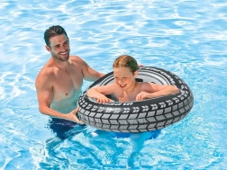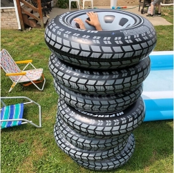 Nudimo vam stilski nafukavajući kolut u obliku automobilske gume, idealan za opuštanje i zabavu u vodi. Ovaj proizvod ističe se svojim realističnim uzorkom gaznog sloja i kontrastnim bojama, što mu daje jedinstven karakter. Odličan je izbor kako za bazene, tako i za plaže ili jezera.