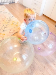 Ogromni napuhujući mjehur promjera do 75 cm donosi sate zabave kod kuće i na otvorenom. Izdržljiv je, lako se napuhuje, a djeca se s njim mogu pingati, kotrljati ga i sjedati na njega po želji. Dostupan u različitim bojama, idealan za djecu od 3 godine.