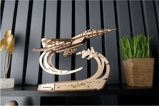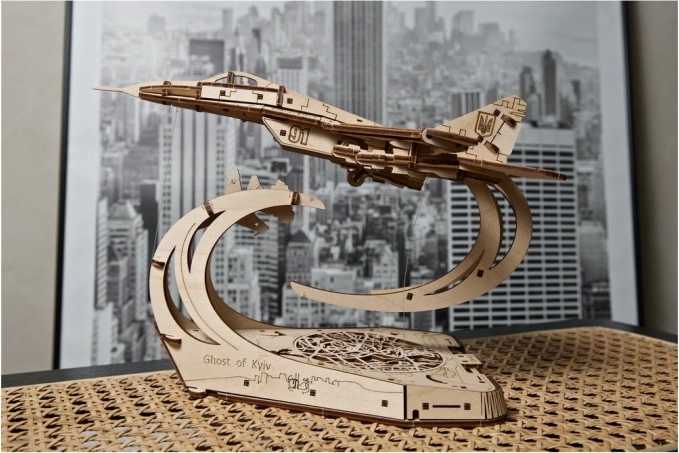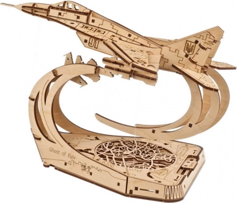 Uživajte u jedinstvenoj 3D drvenoj slagalici koja spaja preciznu lasersku obradu s dojmljivom pričom o junaštvu. Model MiG-29 „Ghost of Kyiv” nudi pokretne elerone, zakrilca, uvlačivi stajni trap i odvojive rakete. Zahvaljujući principu tensegrity model efektno „lebdi” iznad stilizirane karte Kijeva na dizajnerskom postolju.