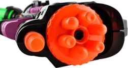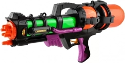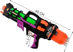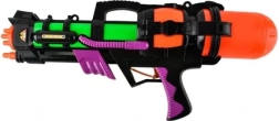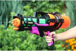 Ovaj vodeni pištolj spaja veličinu, snagu i udobnost. Ogroman spremnik zapremine 1,25 litara produljuje igru bez čestog dopunjavanja, a domet oko 6 metara osigurava impresivan mlaz vode. Upravljanje je jednostavno: odvrnite spremnik, napunite vodom, zatvorite i pomoću donjeg klizača napumpajte – spremno za špricanje.