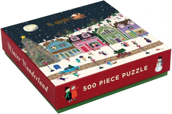 Sastavite oslikanu sliku zasniježenog božićnog gradića. Na puzzlama s 500 dijelova pronaći ćete Djeda Mraza, njegove sobove, visoko božićno drvce i brojne sretne građane. Sastavljanje će zasigurno stvoriti pravu blagdansku atmosferu i u vašem domu! Puzzle Galison izrađene su uz značajan udio recikliranog papira i nude vrhunski tisak netoksičnim bojama. Premazane su mat završnom obradom koja u svim uvjetima osigurava vjernu reprodukciju detalja i boja. Stražnja strana presvučena je glatkom, na dodir ugodnom površinom zahvaljujući kojoj se pri skladištenju složenih puzzli ne stvara prašina. Uz pažljivo zapakirane dijelove u pakiranju ćete pronaći i letak s referentnom slikom koji obično sadrži dodatne informacije o autorima i pozadini nastanka djela. Isporučuje se u iznimno čvrstoj i privlačno dizajniranoj kartonskoj kutiji izrađenoj od recikliranog kartona i održivo dobivenih materijala s FSC certifikatom. Glavne značajke: 500 precizno izrezanih dijelova, izrađeno uz korištenje recikliranih i održivo dobivenih materijala, pomno odabran motiv renomiranih autora i umjetnika, tisak i izrada najviše kvalitete, sadrži referentnu sliku.