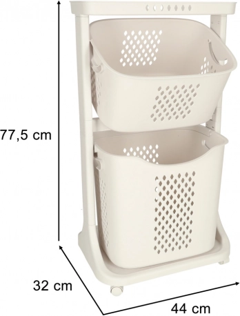 Gornja i donja košara pružaju dovoljno prostora za rublje, igračke ili tekstil. Zahvaljujući uklonjivoj konstrukciji, lako ih napunite, prenesete i ispraznite bez napora.