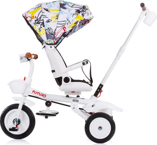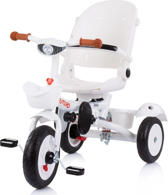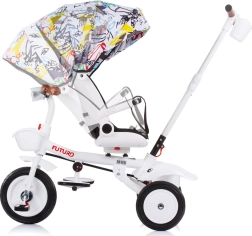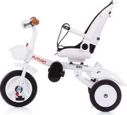 Tricikl Chipolino Futuro 2u1 prilagođava se trenutačnim potrebama djeteta i roditelja. U načinu s roditeljskim upravljanjem osigurava potpunu kontrolu, a kasnije je moguće prijeći na samostalno pedaliranje. Sjedalo se može okrenuti u smjeru ili suprotno od smjera vožnje te nudi 2 položaja nagiba za veću udobnost na dužim šetnjama.