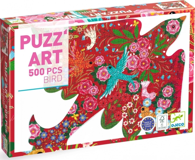 Originalne oblikovane puzzle s motivom ptičice brenda Djeco donose 500 dijelova punih živopisnih ilustracija, plakat 1:1 za lakše slaganje, kvalitetan FSC papir i proizvodnju u Europi – idealna zabava za djecu od 8 godina i odrasle.