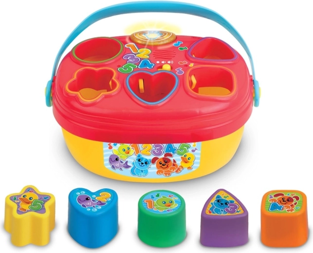 Umetanje oblika s zabavnim zvukovima. Igračka nudi 5 šarenih blokova i svijetleću tipku s melodijama. Umetnite oblike i bit ćete nagrađeni zabavnim zvukovima. Ručka za lakše prenošenje. Kada pritisnete tipku, upali se svjetlo i čuju se vesele melodije. Slagalica ima jednostavno otvaranje poklopca, dizajnirano s obzirom na bebe. Igračka zahtijeva 2× AAA baterije, uključene su.