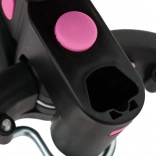 Gumene ručke s protukliznom obradom i pjenasto podstavljeno sjedalo s dvostupanjskim podešavanjem (28–30 cm) povećavaju udobnost. Gumeni kotači (prednji 22×3,5 cm, stražnji 17×3,5 cm) s gaznim slojem odlično drže smjer, a slobodni hod s mogućnošću otkopčavanja pedala omogućuje djetetu sigurno odgurivanje.