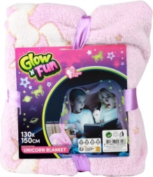 Otkrijte čaroliju večernje udobnosti s ovom mekom ružičastom dekom koja nakon osvjetljavanja zasja motivima jednoroga i zvjezdica. Za najbolji učinak dovoljna je jača rasvjeta – što je duže ostavite da se „napuni“, to će duže i svjetlije svijetliti u mraku.