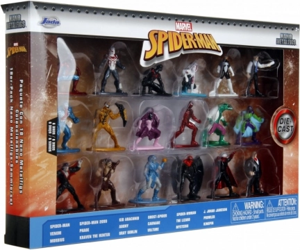 U pakiranju ne nedostaju ni ikonični junaci ni ozloglašeni negativci: Spider‑Man, Spider‑Man 2099, Kid Arachnid, Ghost‑Spider, Spider‑Woman, J. Jonah Jameson, Venom, Phage, Agony, Carnage, The Lizard, Prowler, Morbius, Kraven the Hunter, Gray Goblin, Vulture, Mysterio i Kingpin. Set je izvrstan poklon za male i velike ljubitelje stripova i filmova.