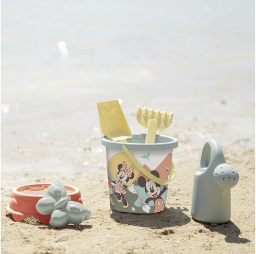 Set sadrži kanticu s likom Mickeya Mousea, grabljice, lopaticu, kalup i zalijevač. U proizvodnji je korišten reciklirani plastika. Proizvedeno u Francuskoj.