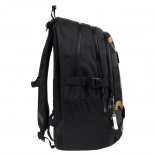 Ruksak je izrađen od čvrstog i vodootpornog materijala, što garantira njegovu otpornost na nepovoljne vremenske uvjete. Reflektivni elementi osiguravaju veću sigurnost, a metalni privjesak u obliku skatea upotpunjuje moderni dizajn ovog praktičnog ruksaka.