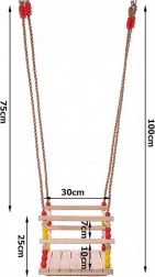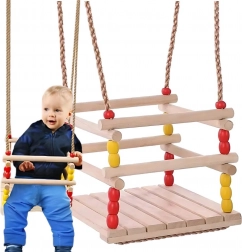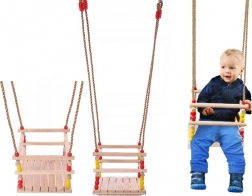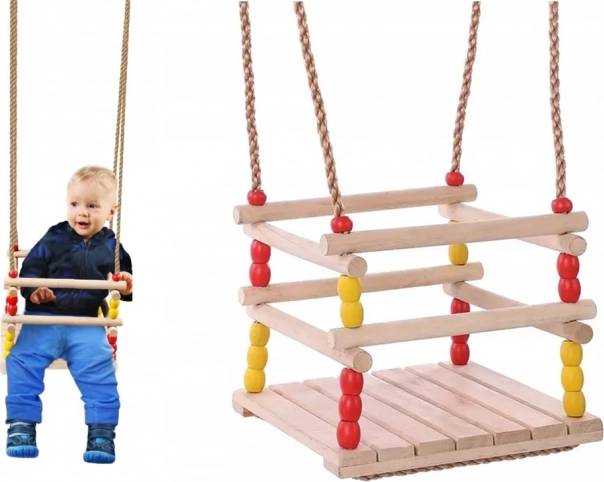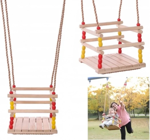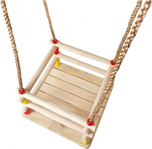 Ova drvena ljuljačka sa sjedalom 30 × 30 cm i sigurnosnom prednjom prečkom dizajnirana je za malu djecu. Zahvaljujući glatko brušenom drvu sjedenje je udobno i ugodno na dodir. Nakon odgovarajuće impregnacije pogodna je za interijer i eksterijer – objesit ćete je na stablo, pergolu ili samostalnu konstrukciju.
