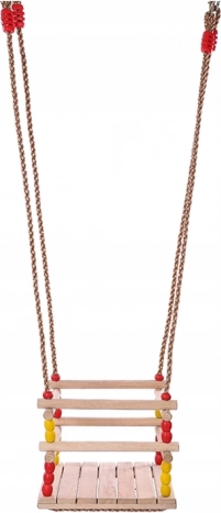 Jaka pletena užad s prstenovima i metalnim okovima osiguravaju stabilnost i sigurnost. Kompaktne dimenzije štede prostor, a ljuljačku lako premjestite ili pohranite. Šarene perlice daju razigran izgled i djeca će ljuljačku brzo zavoljeti.