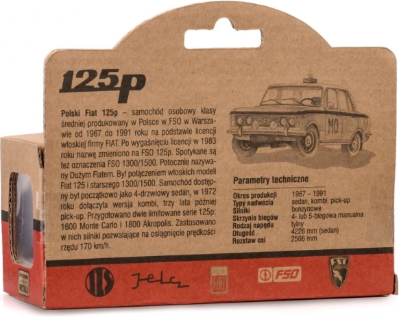 Metalni kolekcionarski model legendarnog automobila Polski Fiat 125p u mjerilu 1:43 razveselit će obožavatelje klasičnih automobila i ljubitelje povijesti motorizacije. Precizna die-cast izrada s plastičnim detaljima i autentičnim izgledom policijskog vozila MO iz razdoblja PRL-a. Idealno za vitrinu, kao poklon ili dio kolekcije.